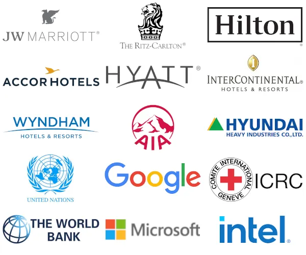 Our online MBA in Tourism programme has a diverse student base from over 130 countries. Our alumni are working for international organisations like JW Marriott, The Ritz, Hilton, Accor, Hyatt Hotels, InterContinental, Wyndham Hotels, AIA, Hyundai, United Nations, Google, ICRC, The World Bank, Microsoft, Intel, Samsung, Tencent, Siemens, Sony.